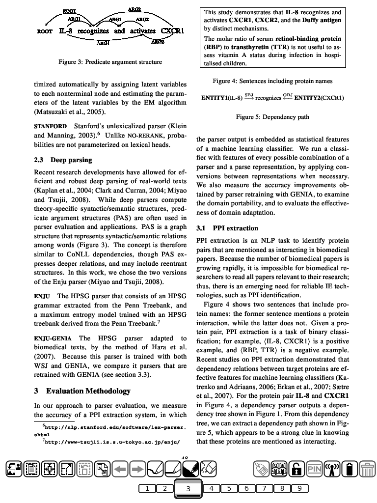 I wrote the comment on the 3rd screenshot with the default stylus. You can change the shade and thickness of the lines drawn by the stylus. You can erase annotations with the stylus, too. I loaded up the browser on my iLiad (Midori) and took a look at the website you linked to above, http://aclweb.org. I could navigate around the site, but not browse the pages you linked to. Web browsing isn't great with the iLiad, it can be slow and buggy, but some sites are OK. e.g. Its easy to do a google search and I can send/receive emails via Fastmail (webmail) on my iLiad. |