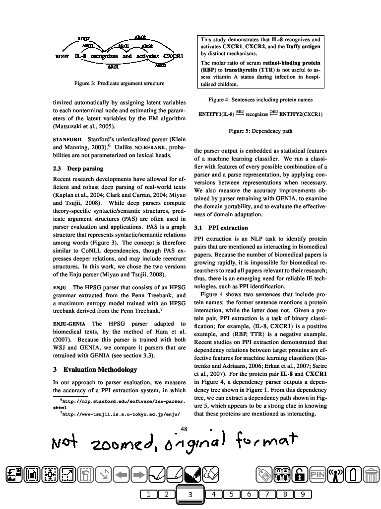 I wrote the comment on the 3rd screenshot with the default stylus. You can change the shade and thickness of the lines drawn by the stylus. You can erase annotations with the stylus, too. I loaded up the browser on my iLiad (Midori) and took a look at the website you linked to above, http://aclweb.org. I could navigate around the site, but not browse the pages you linked to. Web browsing isn't great with the iLiad, it can be slow and buggy, but some sites are OK. e.g. Its easy to do a google search and I can send/receive emails via Fastmail (webmail) on my iLiad. |