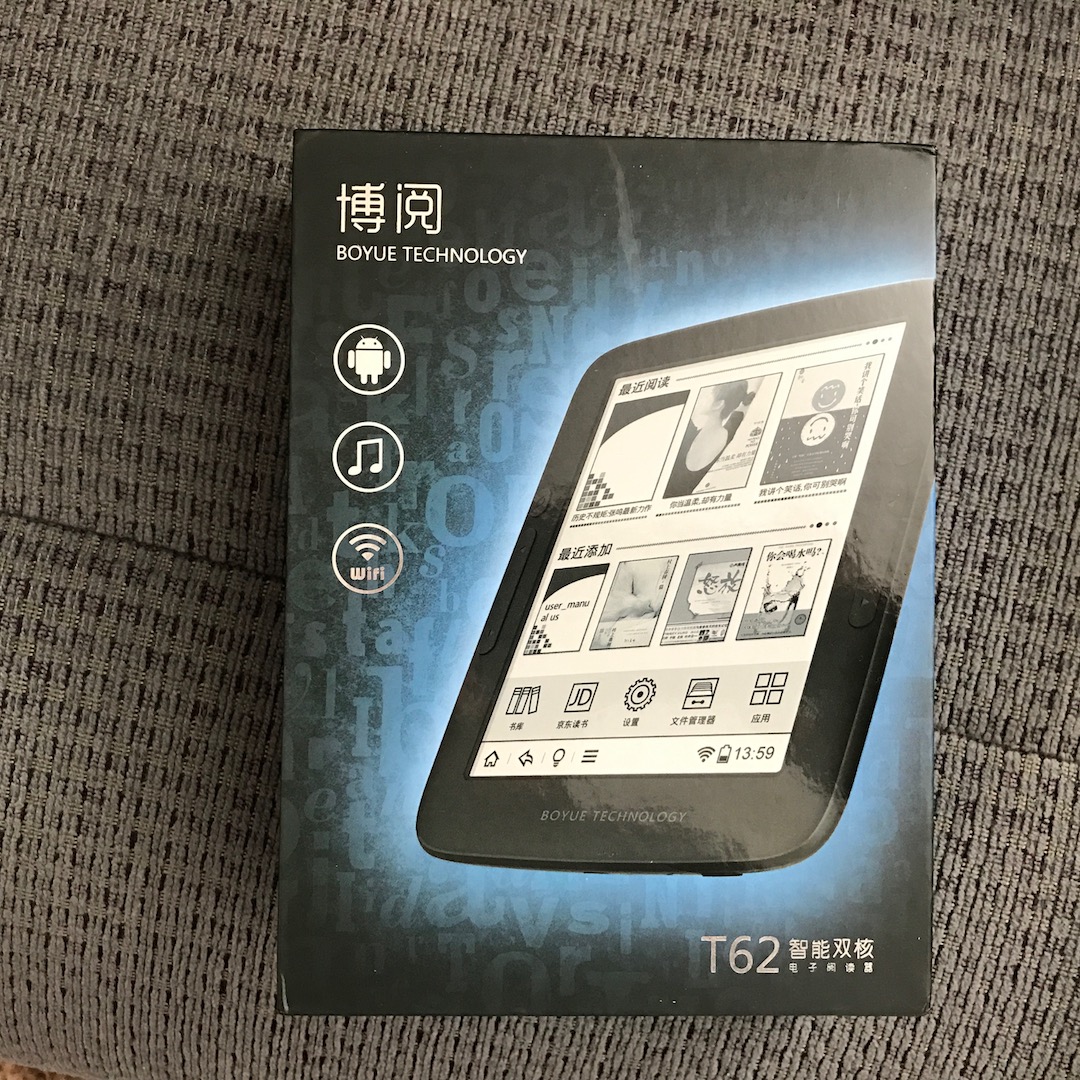 It has arrived. But... Banggood did not send me the JDRead T63. What I received is called the T62E. It looks very much like the T62+ I had some time ago. I am searching for some specs on the T62E, but haven't found anything yet. When I turned it on, it was Chinese, but I found the language settings (lucky guess) and changed to English.