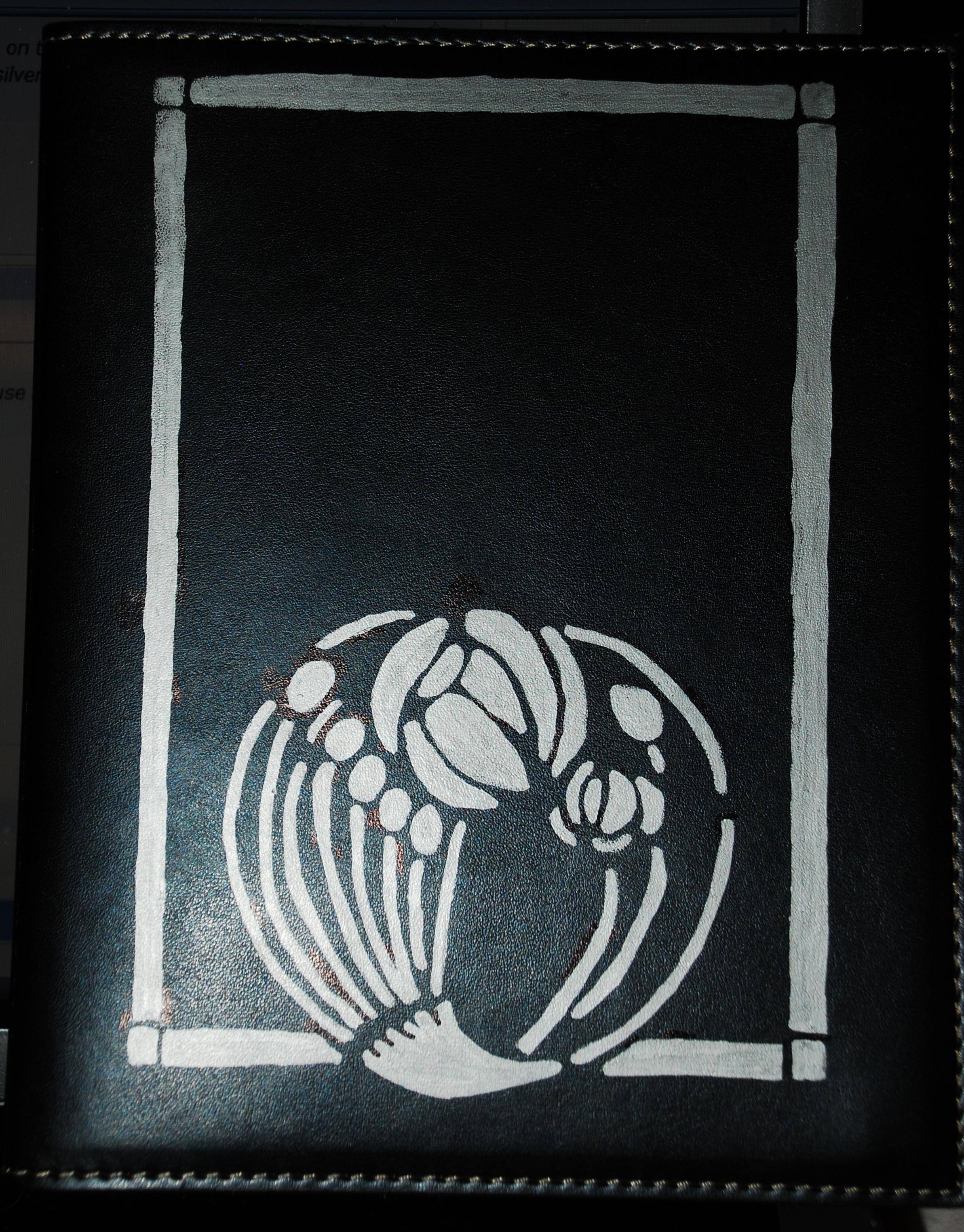 Just for everyone's information, those stock covers that come with the readers are not leather - they're vinyl. I used a brown Sharpie to add the design to the cover in the picture of the above thread. Even though the Sharpie did dry, the ink will still eventually rub off as you touch the cover over the months. I just touch it up with Sharpies periodically.