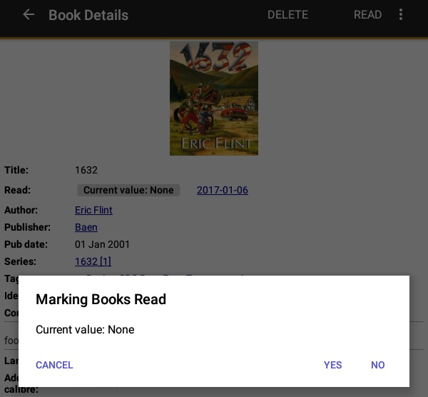 If you tap on the small button next to Read: you see a variant of this dialog. In this case because the current value is None (empty) the dialog lets you set it to Yes or No.