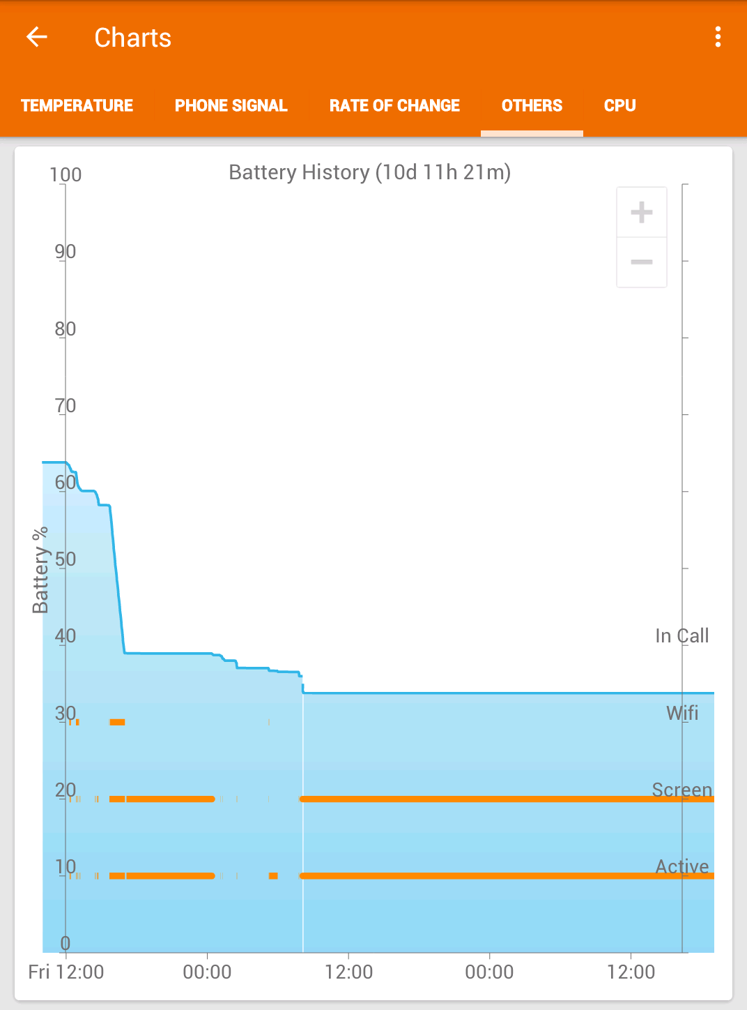 Here's some more info for you: I had GSam battery monitor running for the last 10 days. I'm afraid the "screen" and "active" indicators aren't correct as I turn the device completely off every night. But you can see that pure reading causes very low drain. The times where the power drain is large, I was installing apps or the like. In the third picture, you can nicely see the drain when bluetooth and wifi is on (I was listening to music via bt headphones with musixmatch running to show the lyrics).
