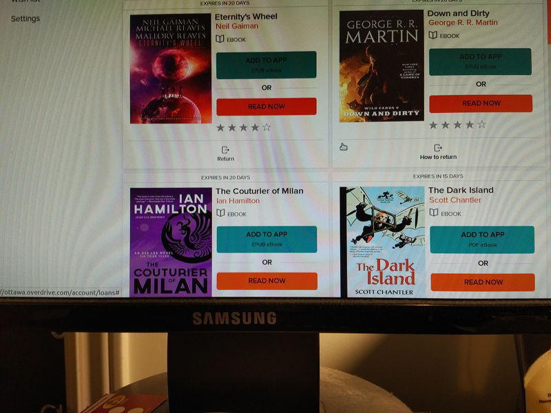 In your second image (T3view) you appear to be on the library's actual website and the second book has the "pick a format to download" option instead of the "download Adobe epub" option of your first. I expect you might have difficulty with the second. |