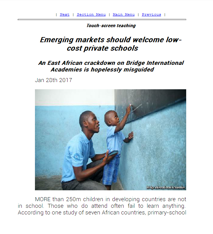 I am using the latest version of CR3 on my Pocketbook Inkpad 2. I am reading Newspapers and Magazines downloaded from Calibre (eg. The Economist) in EPUB format and there is a page break between the "Navigation Header" and the rest of the article. It is meant to be on the same page as can be seen in comparison with Calibre Reader. The "Navigation Footer" works as intended at the end of the article. The first 2 images are the first and last pages of the article in Calibre Reader (how it should be) and the last 3 are from the Inkpad 2 with the page break. I wish for the "Navigation Header" to be on the same page as the beginning of the article. Last edited by moose9; 02-06-2017 at 04:04 PM. |