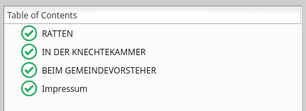 I will answer in the appropriate thread. That's here! Answer: The ordinary way I always do it. Both ToC's function in ereader. inline ToC Table of Contents Last edited by chaot; 02-15-2017 at 11:37 AM. Reason: normal→ordinary |