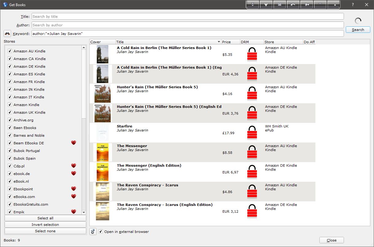 I had a faint hope that there might be some central registry that issued ISBNs or some such, and thus could be checked for the(theoretical) existence of an epub, rather than working through a list of stores. For Julian Jay Savarin - Amazon do have 4 titles in kindle format but he's written many more that appear to be paper/hard back only |