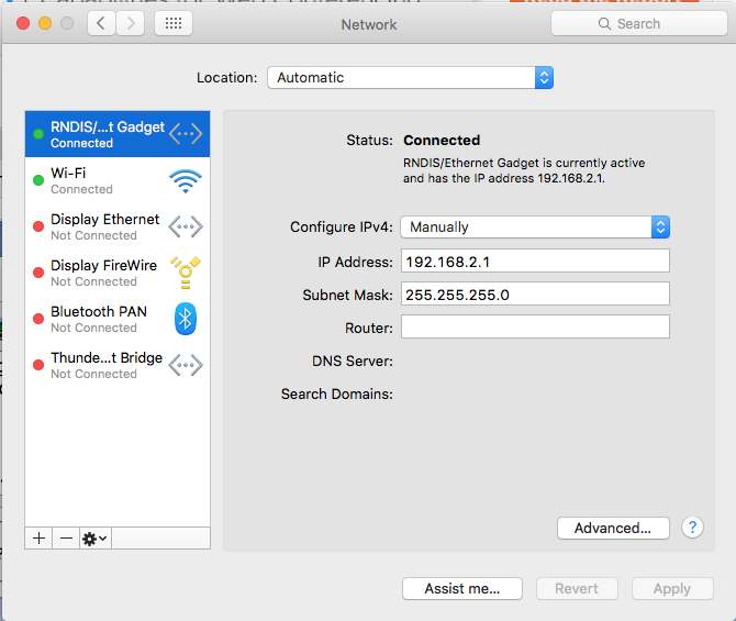 I can see RNDIS/Ethernet Gadget connected in Mac's network preferences (screenshot below).