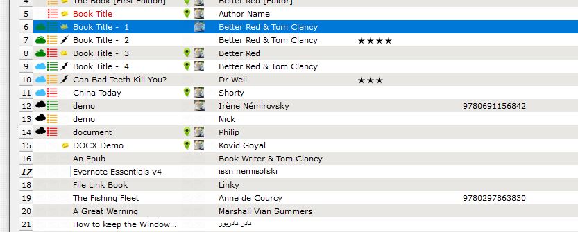 Select books by clicking on number in left column