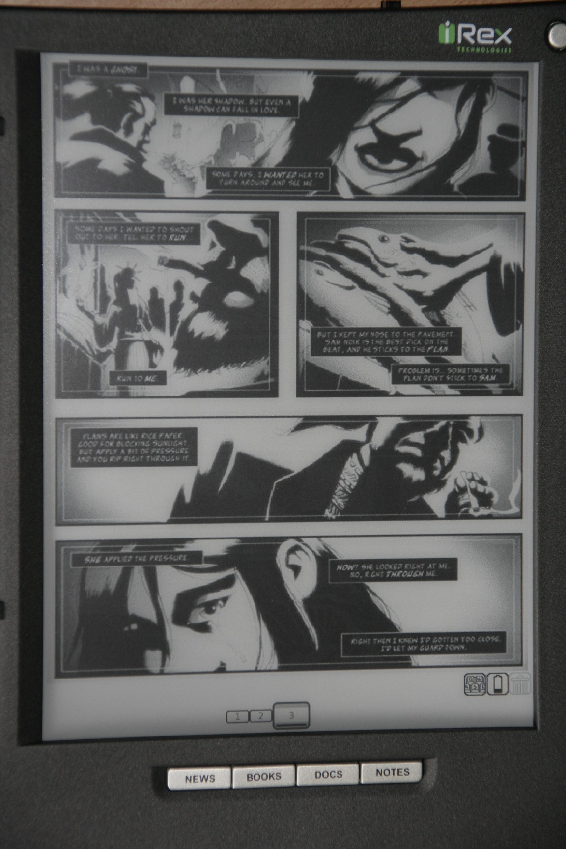 I am pretty happy with the result, it shows the potentional that the iLiad can be used to view comics, only a decent viewer and a good format are needed. What do you guys think about it ? |