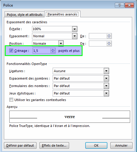 I must give full credits to BetterRed for showing me the solution for the letter-spacing. In my Word font - advanced settings (see two joint screenshots), there was indeed a kerning (crénage) value (see the green rectangle). It acted in a devious way: the appearance of the odt file was not modified. This kerning value was somewhat "buried" within the xml substrate of the odt file. It only appeared when I exported to EPUB, when the converter picked it up. For what it's worth, I also provide the other font settings. I use a customised font named LinLibertineG30. So, we have two items explained: letter-spacing (my mistake), image relative width (Word's weakness). Two are still in waiting mode: 1. the ubiquitous presence of the span "Policepardfaut" 2. how to force Word to apply the original odt styles for titles and notes? Last edited by roger64; 04-23-2017 at 01:29 PM. |