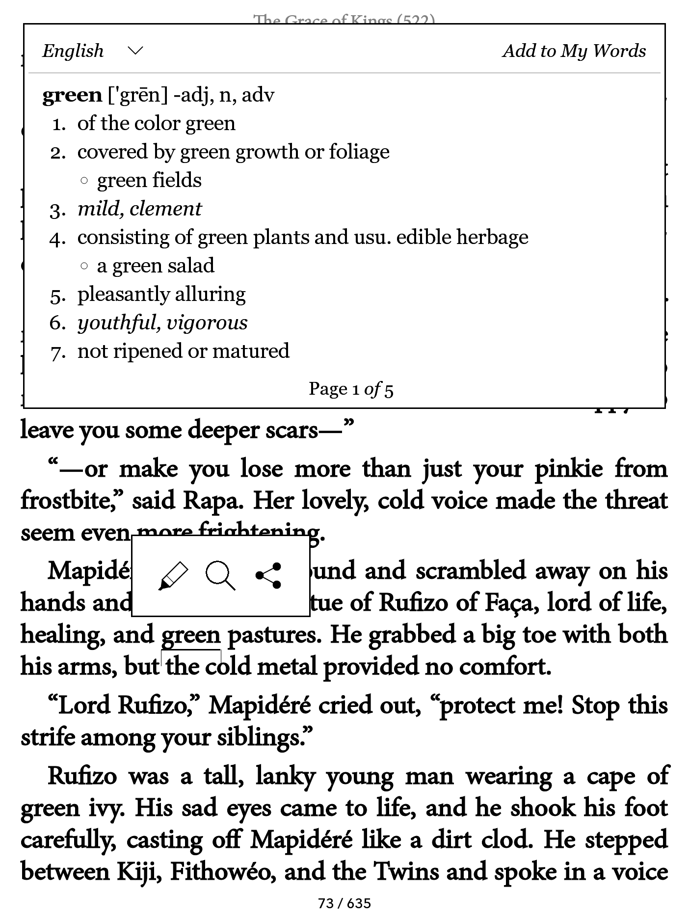 Note: If you own several different Kobo models it is unlikely that you will be able to find one custom font-size which will look good on all your devices so you may need to run the patch process multiple times with a different settings. Update for firmware 4.17.13694 This update should benefit those who have also installed some of the many custom dictionaries posted elsewhere in the Kobo forum. Custom dictionaries often appear to have many blank lines. The aim of this update is to remove some of that excess whitespace in both pop-up and full-screen dictionary widgets. This update will not adversely affect patch users who only use Kobo's built-in dictionaries. Patch customisation looks pretty much the same as ever. The last 3 attached screenshots are taken from firmware 4.17.13694. Each shows both the pop-up and full-screen widgets for a custom dictionary [Oxford English] 4. unpatched KA1 5. patched Forma: WITHOUT customisation of font-family/font-size/line-height 6. patched Forma: WITH customisation. font-family: Arial, font-size: 32px, line-height: 1.30em Screenshots 4-6 do NOT have my 2nd dictionary patch enabled, Dictionary pop-up - increase available text area. Enabling this 2nd patch would also reduce the header and left/right margins inside the pop-up widget reclaiming a little more room for the dictionary definition Unfortunately, due to Kobo changes, the 2nd patch can no longer increase the box-size of the pop-up widget nor reduce the height of the 'Page x of y' footer. Last edited by jackie_w; 09-20-2019 at 06:59 PM. Reason: Updated for firmware 4.17.13694 |