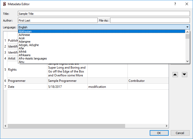 4. If you do not know any Marc Relator codes, they are all easily generated and *described* in the dialog as you add them. Ditto for Languages. So if you are a novice and run into a Role property you do not understand, you can easily add and remove all metadata properties to get down to whatever set you actually do understand and want.