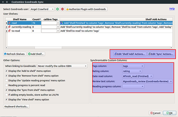 - Shelf: read => Add 'Shelf.finished' to column 'tags', Remove 'Shelf.currently reading' from column 'tags', Remove 'Shelf.to read' from column 'tags', Add 'today' to column '#finish_read'