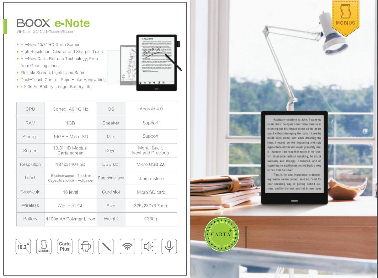 The link goes to the facebook of Onyx Boox Turkey, with the following spec sheet of the upcoming Onyx E-Note posted: