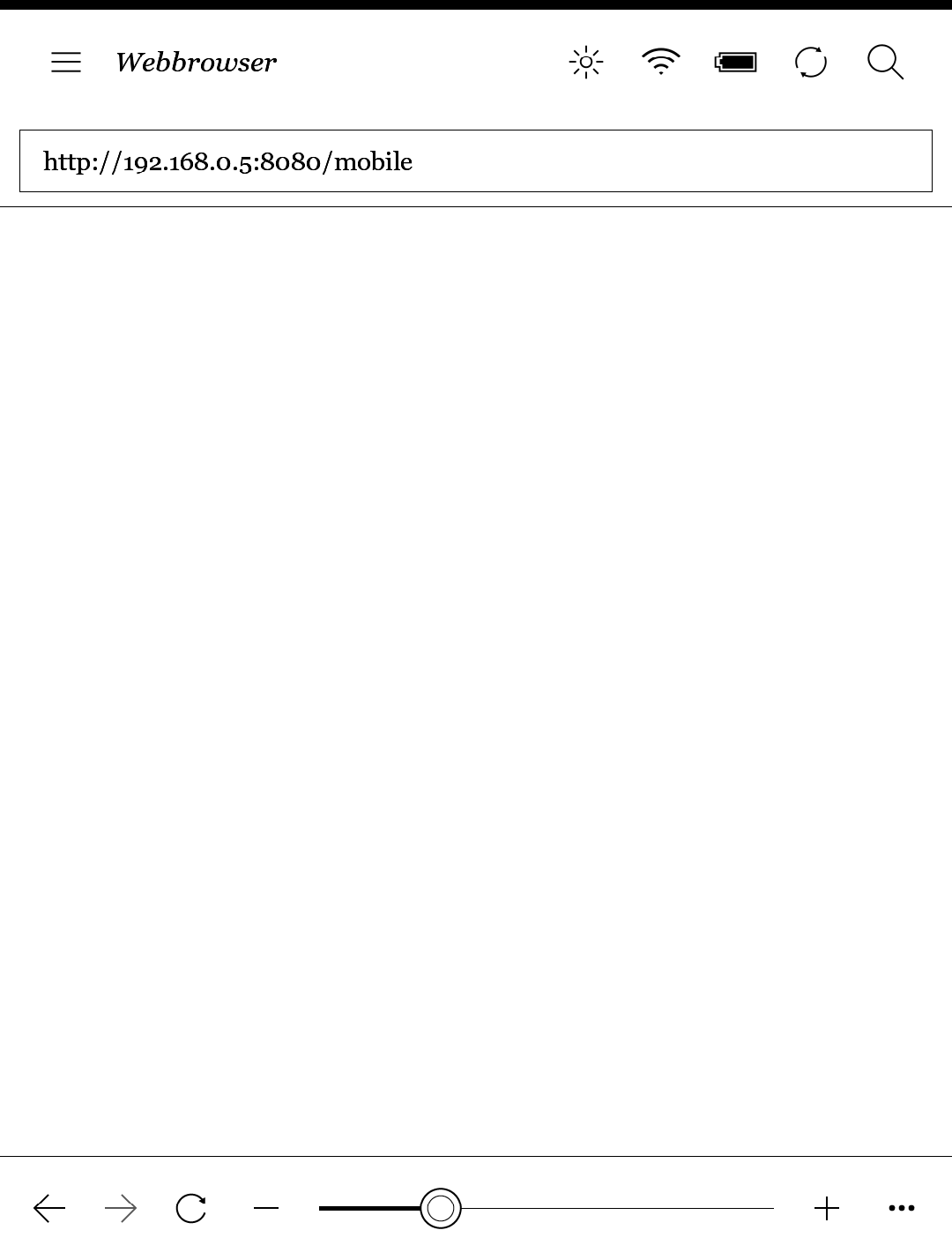 The simple page link is displayed after the call, but after a tip on this link nothing happens. No login is displayed, only a blank white page. The screenshots illustrate this. I think, however, that this is due to Kobo. Even after years the browser still has the beta status. I do not even need this function on my reader, because I copy the eBooks by means of Calibre via USB. Now and then I like to play with my gadgets and try what is possible. I have tested it with Calibre 2.99.9. |