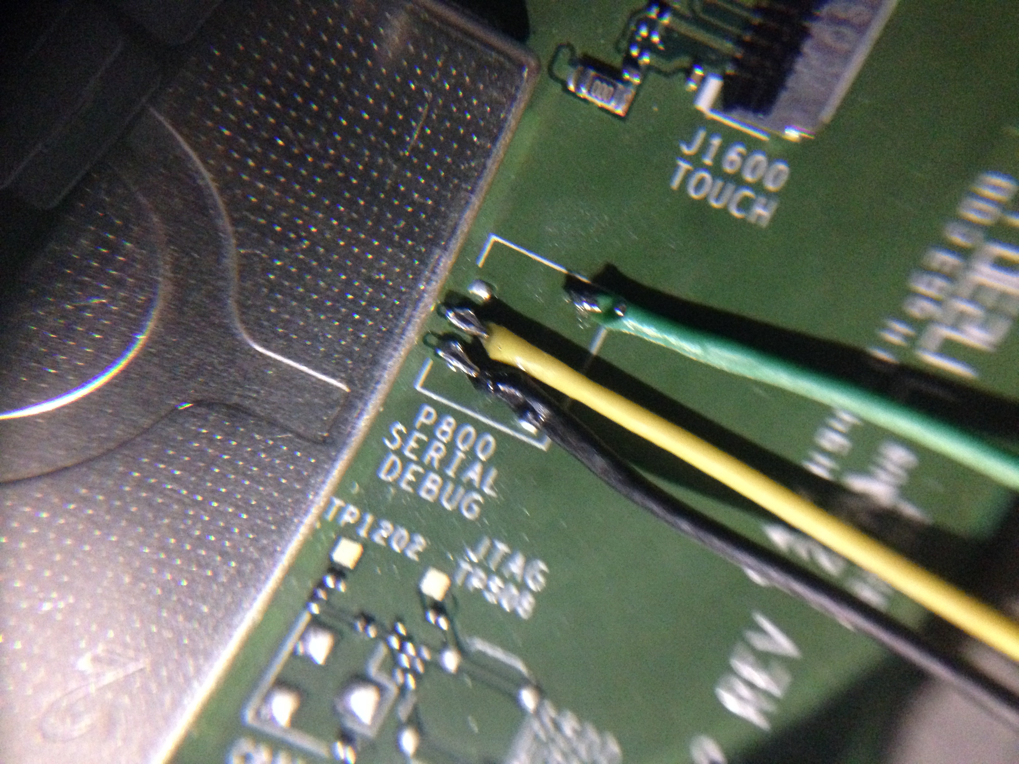 There is another pad that give 1.65v, that I have soldered to, but I don't trust it :-) The power button pad gives proper 1.8, but pulling that down to ground turns the kindle on/off. I think I saw some people use a AA battery for the reference, if I do that, do I just hook Negative to ground, and the positive to the reference voltage on the serial board? Any recommendations are appreciated. Going from top to botom in my image: Code: