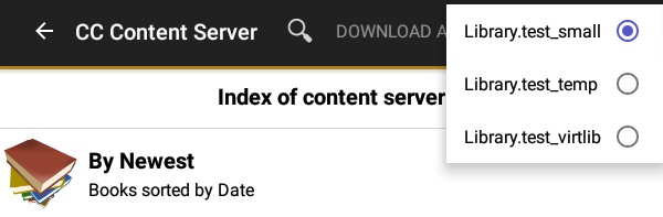 If on my test system I tap "Change Library" then I see the following: I can then tap the library I want, in this case the second one, in which case the library changes. After I do that then I see the following: and I am looking at the books in the second library, exactly as I expect. What exactly are you seeing? If you are saying that you are not seeing all the libraries on your computer then the answer is "you are seeing all the libraries that calibre knows about." CC asks calibre for the list of libraries. Calibre gives back to CC the libraries that are on the calibre "quick switch" menu. There is nothing that CC can do about that. Instead, you mist be sure that the running instance of calibre has all the libraries of interest in its library change menu. As for discrimination, CC uses what calibre gives it. Calibre does not like path names with non-ascii characters in it, and never has. Again, there isn't anything that CC can do about this. |