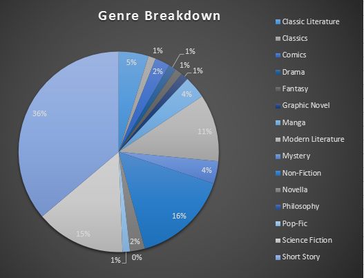 However, this year I decided to record books bundled as one title as one book, instead recording each book individually. While I have only recorded 52 books (instead of 58), I am not unhappy as I seem to be on track to again besting that 94 that was my benchmark for many years. |