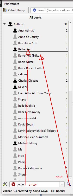 Has this been changed? The "search" box at the top on the left of calibre was how I usually searched for authors. Mind you I'm still trying to get used to the changes... only installed the version 3 as an upgrade from version 2.xx a day or two ago.