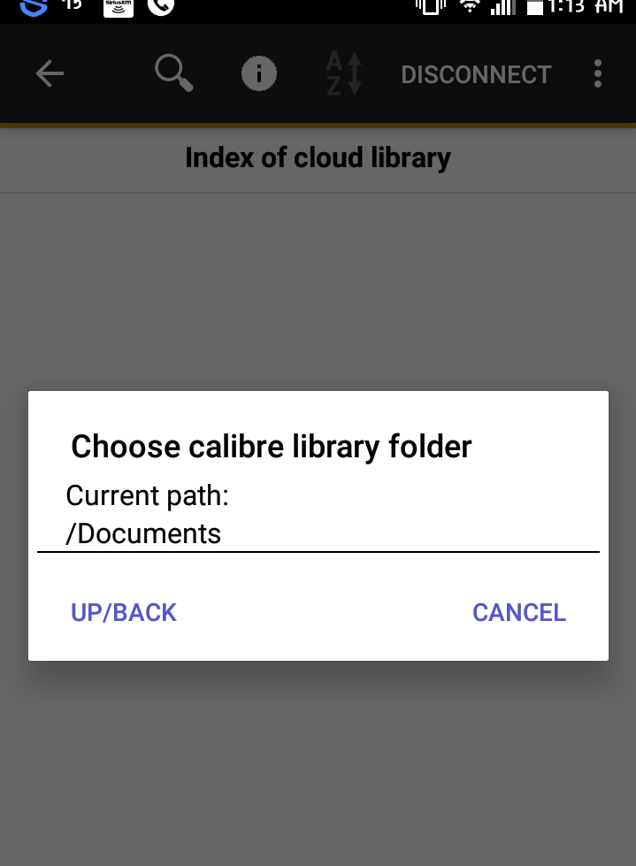 ok I've selected /calibre/My Books...and still the only options are up/back and cancel >.<