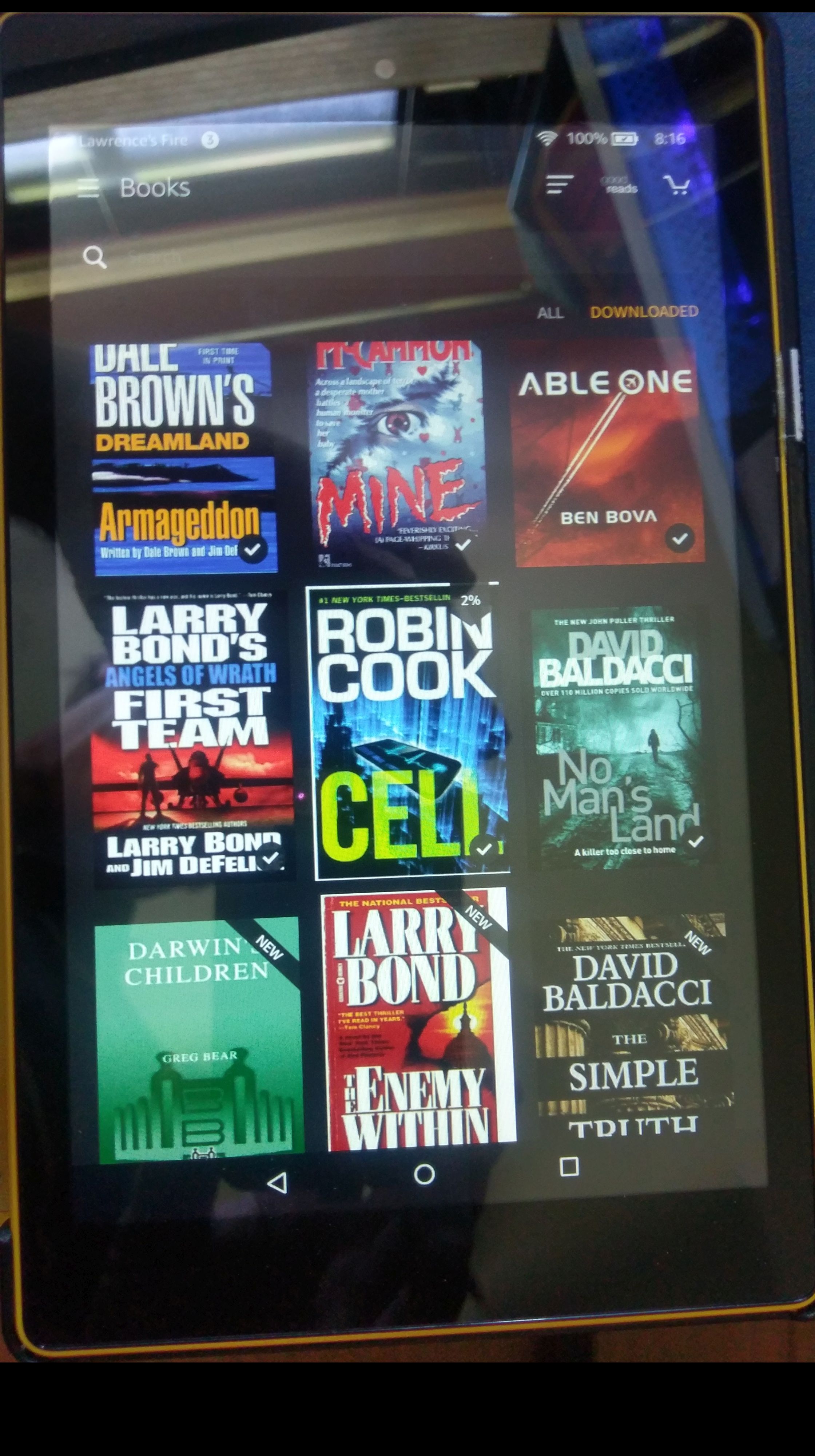Notice that Larry Bond's "THE ENEMY WITHIN" and Ben Bova's "ABLE ONE" are only loaded on the SD card and appear in the Books Library.
