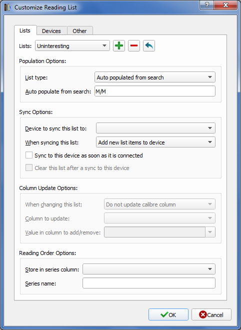 That list should show you all the same books as if you had typed "M/M" into the search bar. But, based on your question earlier, you might want to use something like '#mycustomcolumn:="M/M"'. The name you use is whatever you put into the "Lookup name" when you created the column. Is that what you want? |