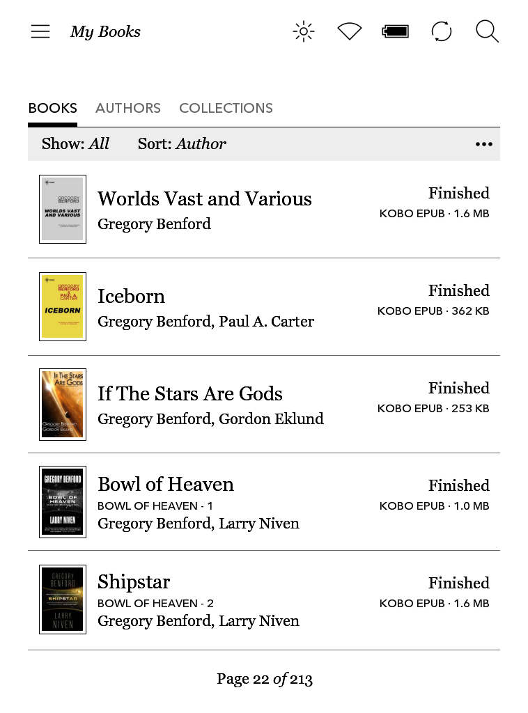 The authors list splits the authors at the comma, so that each author has their own entry in the authors list. Hopefully Kobo will rethink this flawed design, but for now I don't think there is any way around that if you want the authors list to work properly. Last edited by GeoffR; 09-08-2017 at 05:31 AM. Reason: added authors list screenshot |
