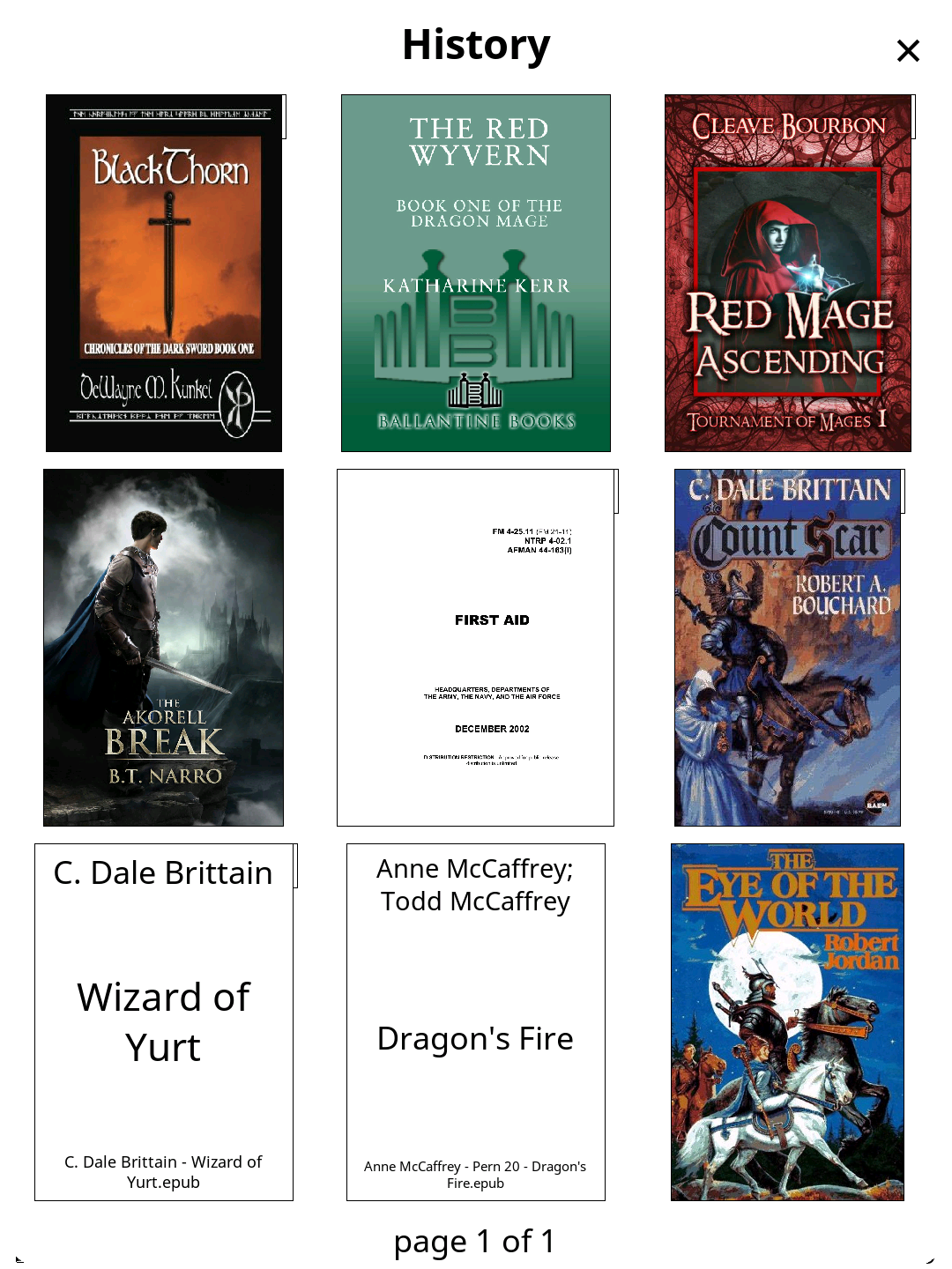 KOReader has added "Display mode" settings, that include such images for its "File Browser" and its "History" listing. The attached screenshots: