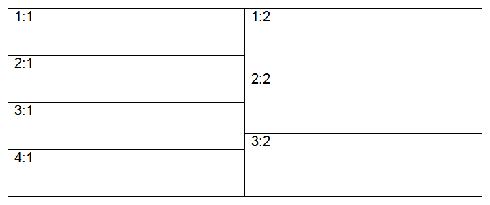 <tr> <td rowspan="3">Cell 1:1</td> <td rowspan="4">Cell 1:2</td> </tr> <tr/> <tr> <td rowspan="3">Cell 2:1</td> </tr> <tr/> <tr> <td rowspan="3">Cell 3:1</td> </tr> <tr> <td rowspan="4">Cell 2:2</td> </tr> <tr/> <tr> <td rowspan="4">Cell 4:1</td> </tr> <tr/> <tr> <td rowspan="3">Cell 3:2</td> </tr> <tr/> Any ideas of improving it? Last edited by Ghitulescu; 09-22-2017 at 12:05 PM. Reason: wrong copy/paste |