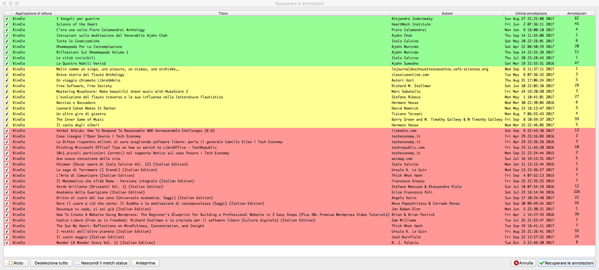 Errore recuperando le annotazioni: <p>Non sono in grado di recuperare annotazioni da Amazon Kindle.</p>