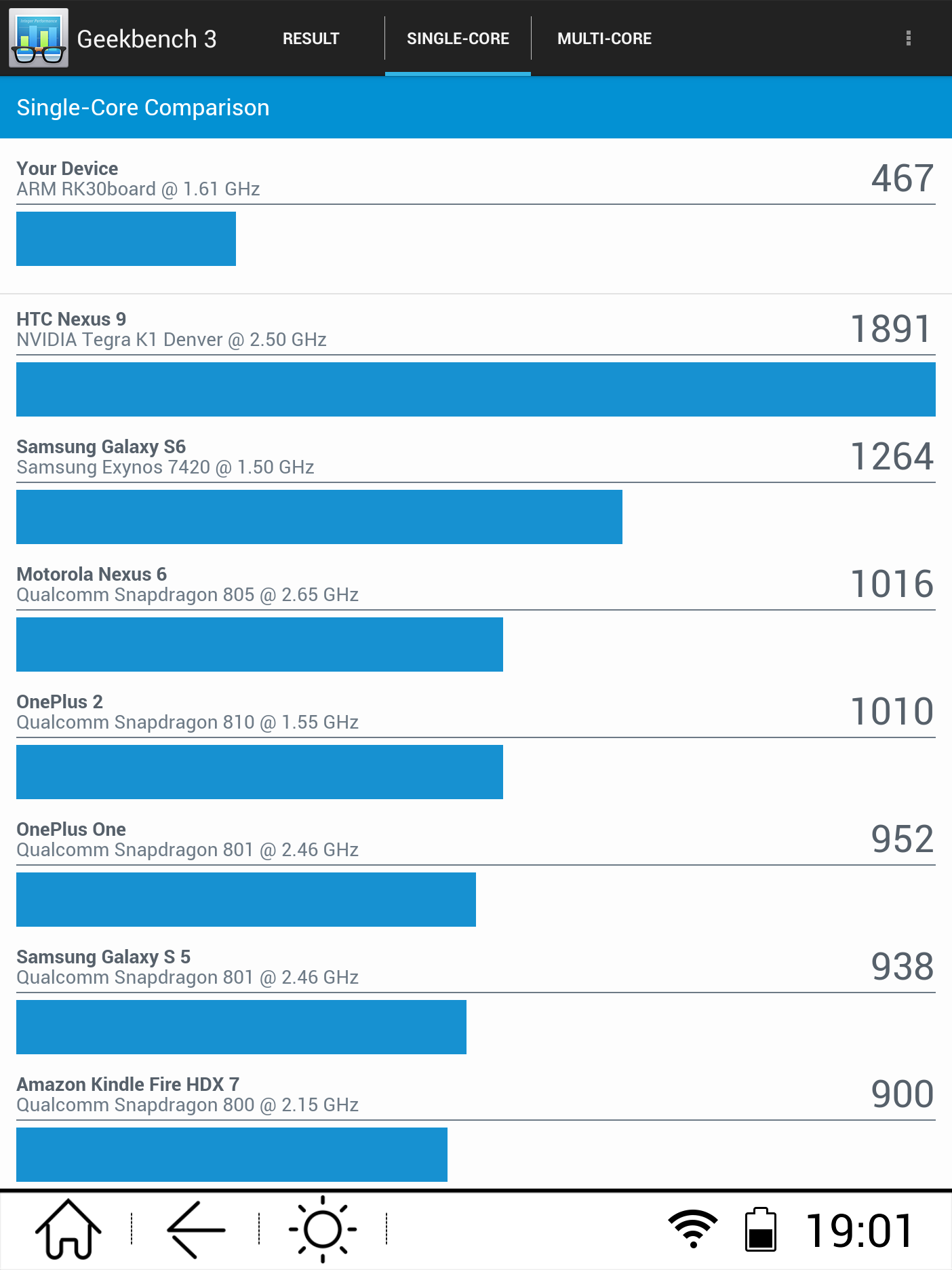 why not running Geekbench 3 on your device? Geekbench 3 also supports older Android versions (4 does not). You will need to be connected to the Internet to obtain the results. Please also see: https://www.mobileread.com/forums/sh...d.php?t=290641, "Multicore Processor" | |