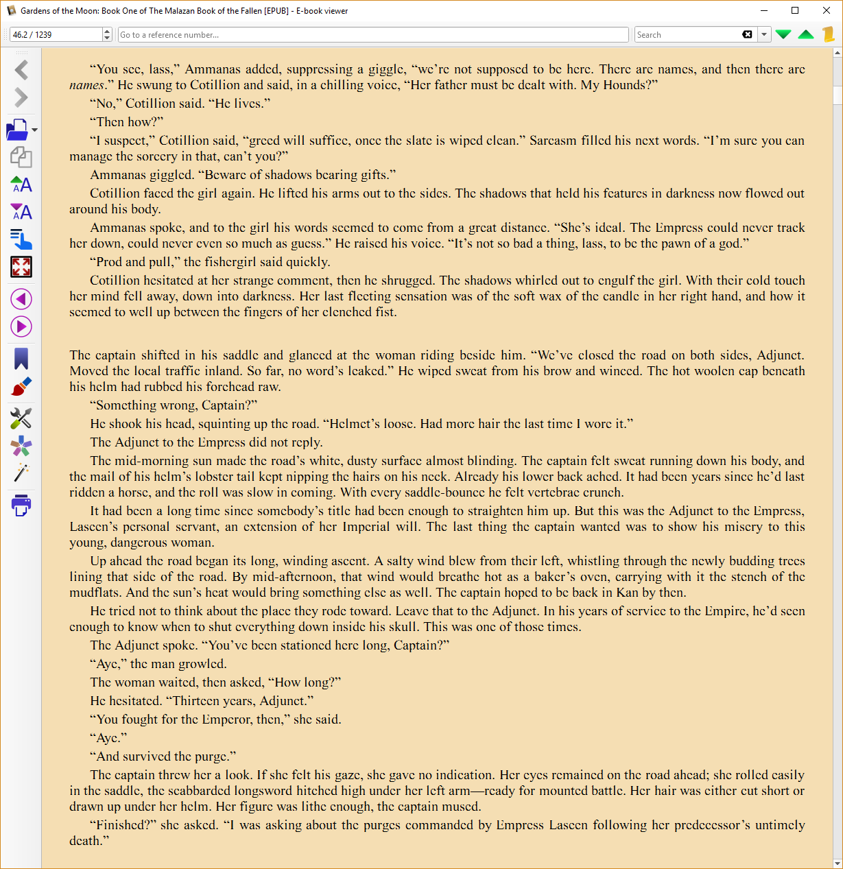 Here are two screenshots, my settings are unchanged between both. The first one happens specifically in this book, in all others it looks like the 2nd image. I tried changing the fonts in the reader preferences, and it did nothing to the Malazan book. The Malazan one was converted from AZW3 (says KF8 in the window name), but in either case the font is the same.