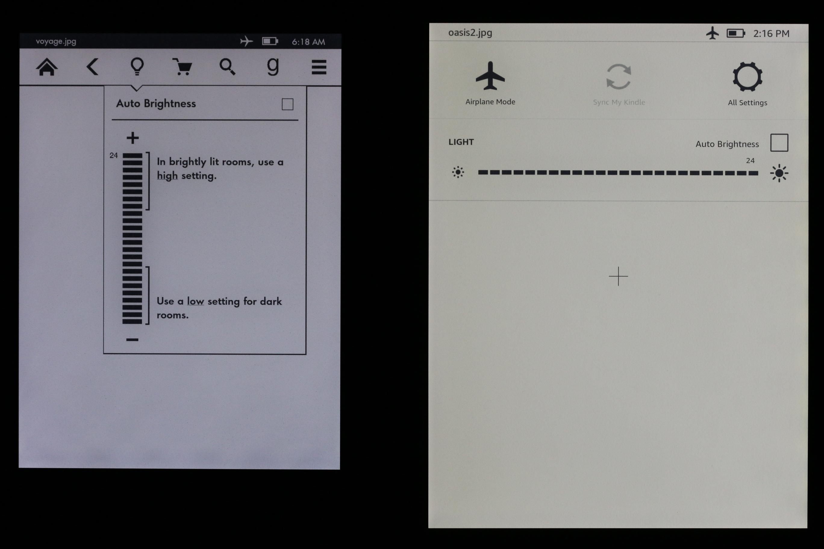 Oasis 2 vs Voyage dark room screen comparison