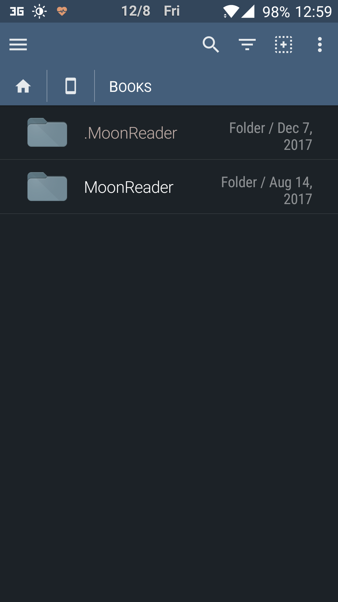 There's also a hidden MoonReader folder in the same folder - try deleting that one too. You will need to have a file manager that allows you to see hidden files. I use FX File Explorer. The hidden files setting is in the view settings menu (while you are viewing files). You can also just delete the folder that the MoonReader folder was in if you don't have anything else in it.