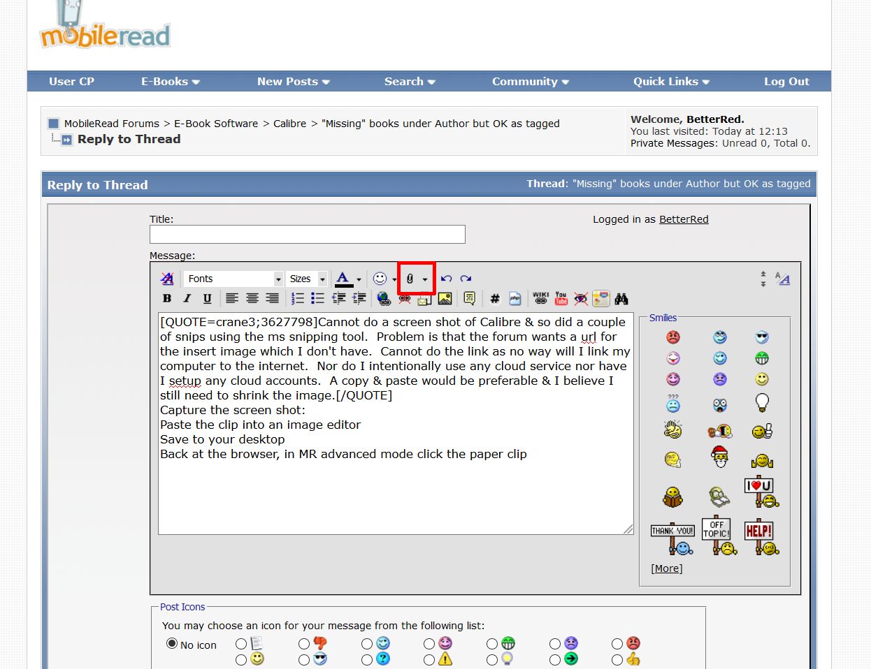 Cannot do a screen shot of Calibre & so did a couple of snips using the ms snipping tool. Problem is that the forum wants a url for the insert image which I don't have. Cannot do the link as no way will I link my computer to the internet. Nor do I intentionally use any cloud service nor have I setup any cloud accounts. A copy & paste would be preferable & I believe I still need to shrink the image.