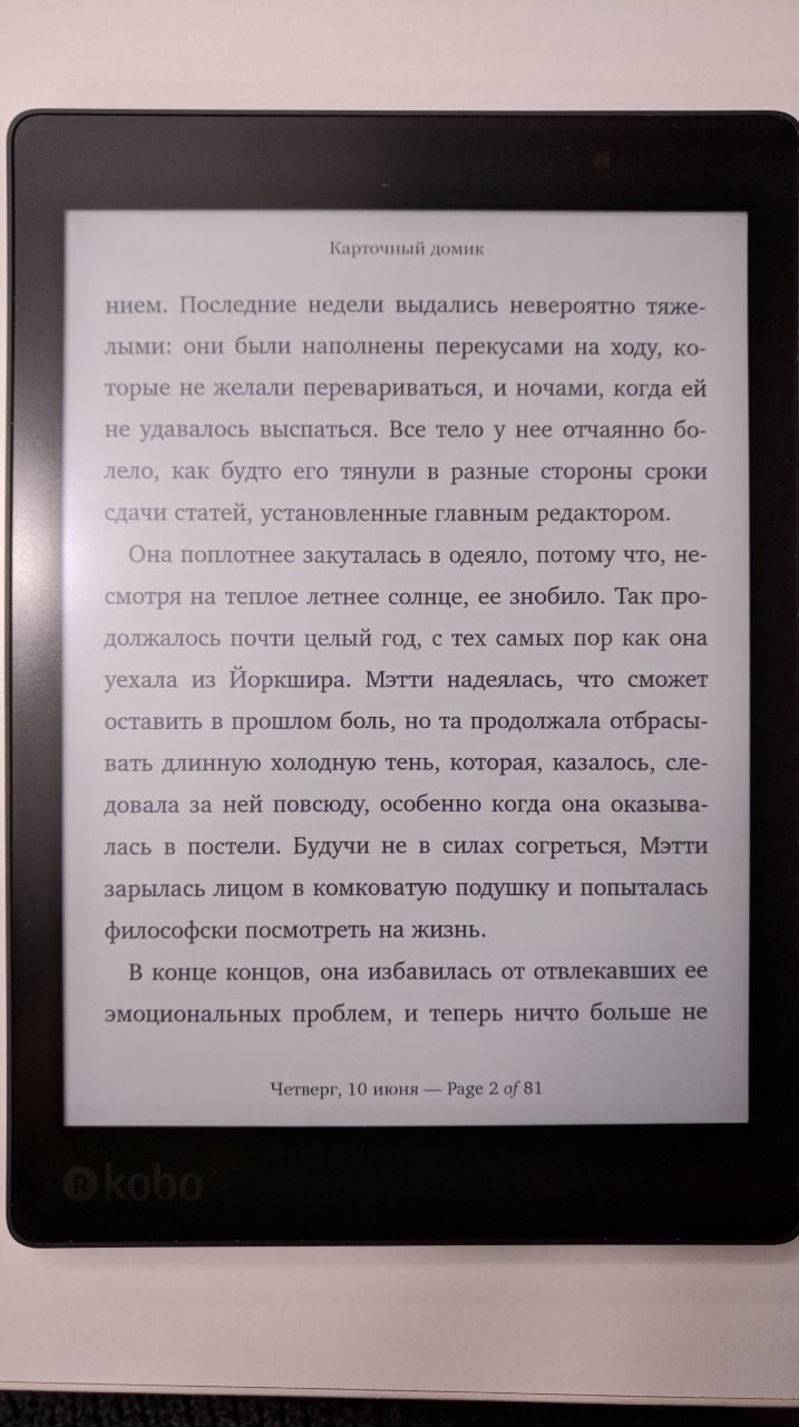 0. Patch firmware for always hyphens for Kepub. 1. Apply path for hyphens, posted in this tread above. 2. Get book in FB2 3. Convert to EPUB, by fb2mobi: https://github.com/rupor-github/fb2mobi * in settings switch off hyphens; 4. Convert to KEPUB by kepubify: https://github.com/geek1011/kepubify Page view you find in attachment. Last edited by Vetchy; 12-22-2017 at 09:47 AM. |