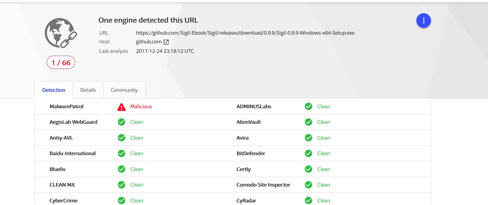 As normal with all downloads, I ran the download past Defender and MWB, they reported no threats found, and then past Virus Total, its results were the same, viz: On this occasion I also ran the git URL through Virus Total, as far as I could tell this was the first time VT had scanned this URL, it gave this result I can't explain why the results are different, nor why the Last Analysis times are as they are ![]() No problems with installing - didn't uninstall first. BR
