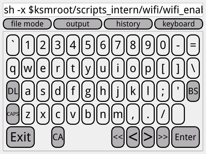 type into the input field: sh -x $ksmroot/scripts_intern/wifi/wifi_enable_dhcp.sh (typing is even more laggy than selecting a menu entry)