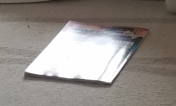 This was a very random occurrence. I raised from the desk after posting about TeamViewer in the "monitor" thread. Collapsed on a stool in a nearby room vegetating a while to shake off the cold. The eye fell on a magazine that was sitting on the carpet. That's a magazine, meant for reading. The photo (untreated, just cropped) exaggerates the horror, but not much - it compresses to white what in real world is seen as "almost white with a bit of original".