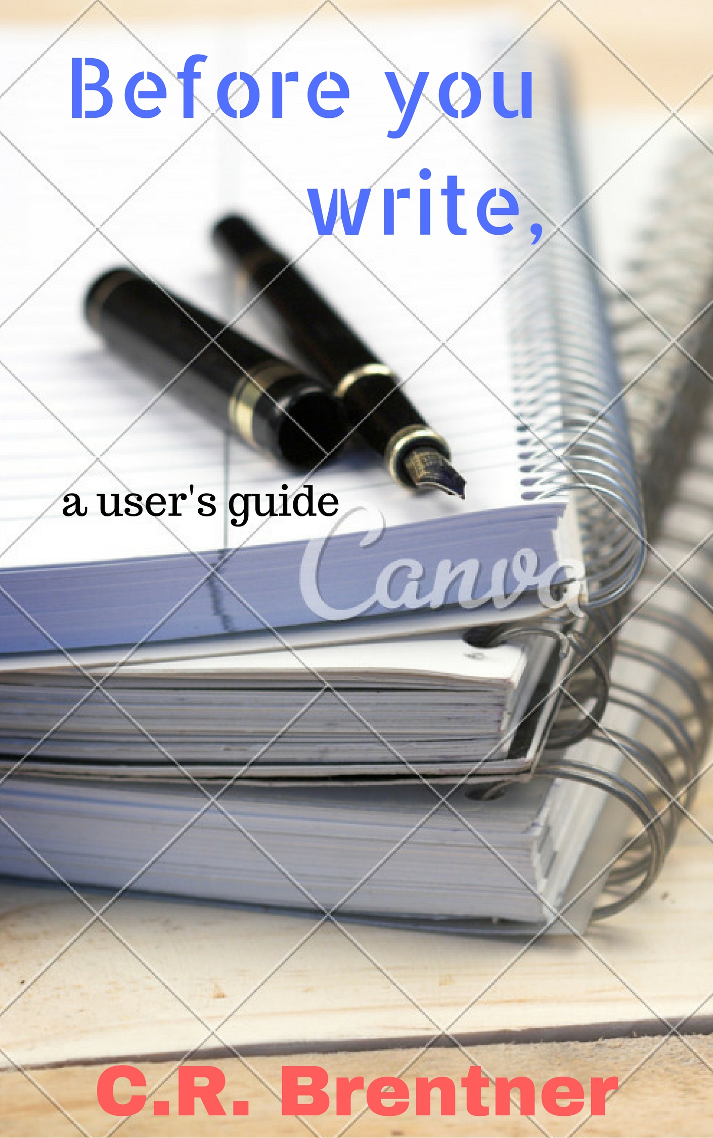 Try moving "write" over so that it wraps around the pens. Maybe deepen the blue of the text a bit more. The subtitle can be made a big bigger/bolder too, I think. With the background so much in your face you really need to push the title etc. more to make them show up. |