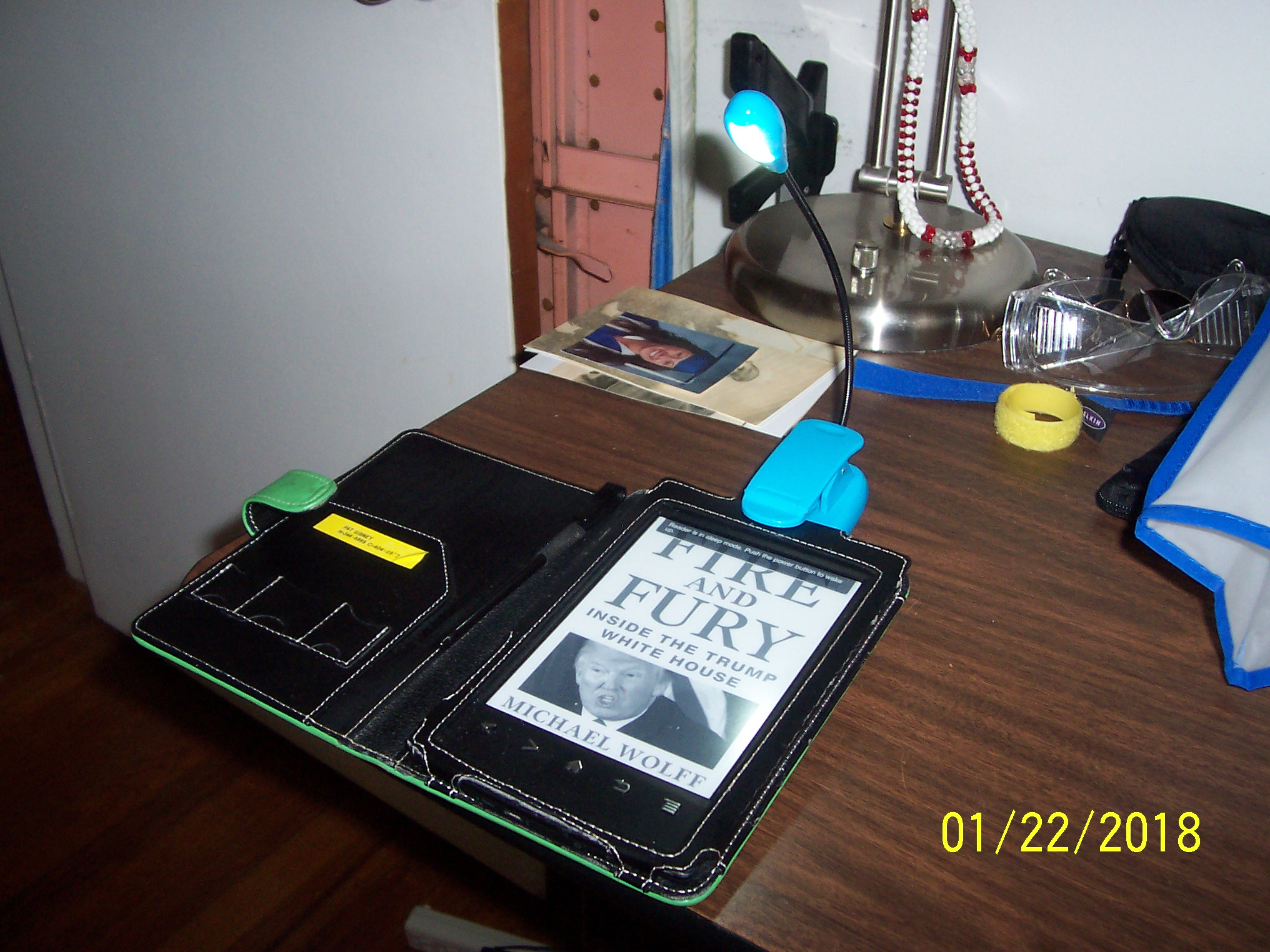 (Picture taken with my Blackberry Q10, so not the highest quality.) Another image added. This is how I use my E-Luminator on most of my readers. I just shove the end between the back of the reader and case. For those cases that custom fit the reader, I can flip the back cover over and just the E-Luminator to the front flap. These M-Edge cases actually have a slot on the side for E-Lumintors, but I always found myself trying to bend the neck of the light and it never stayed in place. Using it vertically like this, instead of horizontally, I don't have to mess with it for hours. You'll note, JSWolf, how pull the right, top strap off the edge of the reader when reading. it hangs slightly over the edge of the screen, which bugs me. Flipping it over like this, it works fine. I don't even notice it. Last edited by rcentros; 01-23-2018 at 07:56 PM. Reason: Added image |