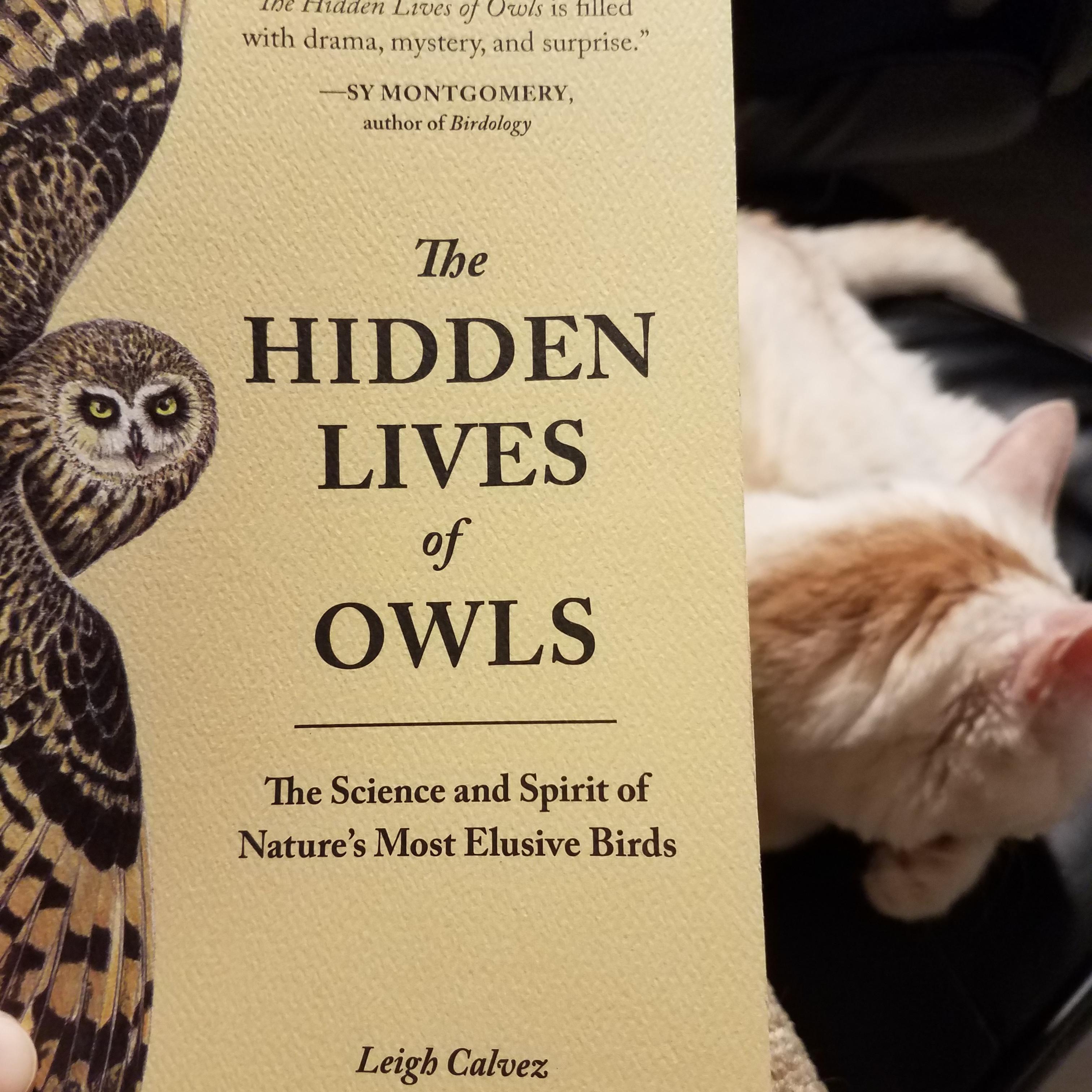 Enjoying Leigh Calvez's The Hidden Lives of Owls with Willow the cat.