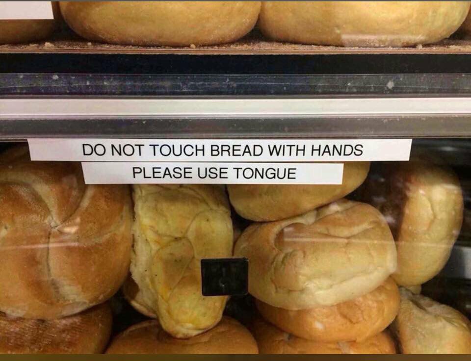 Why is there a naked person sitting on the counter over the bread? |