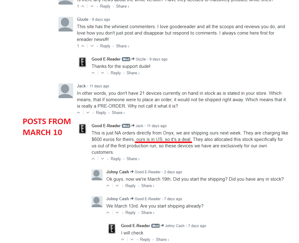 They have no evidence of having any Onyx Boox in stock. They refuse to respond and they have now edited their website silently to disclaim themselves.