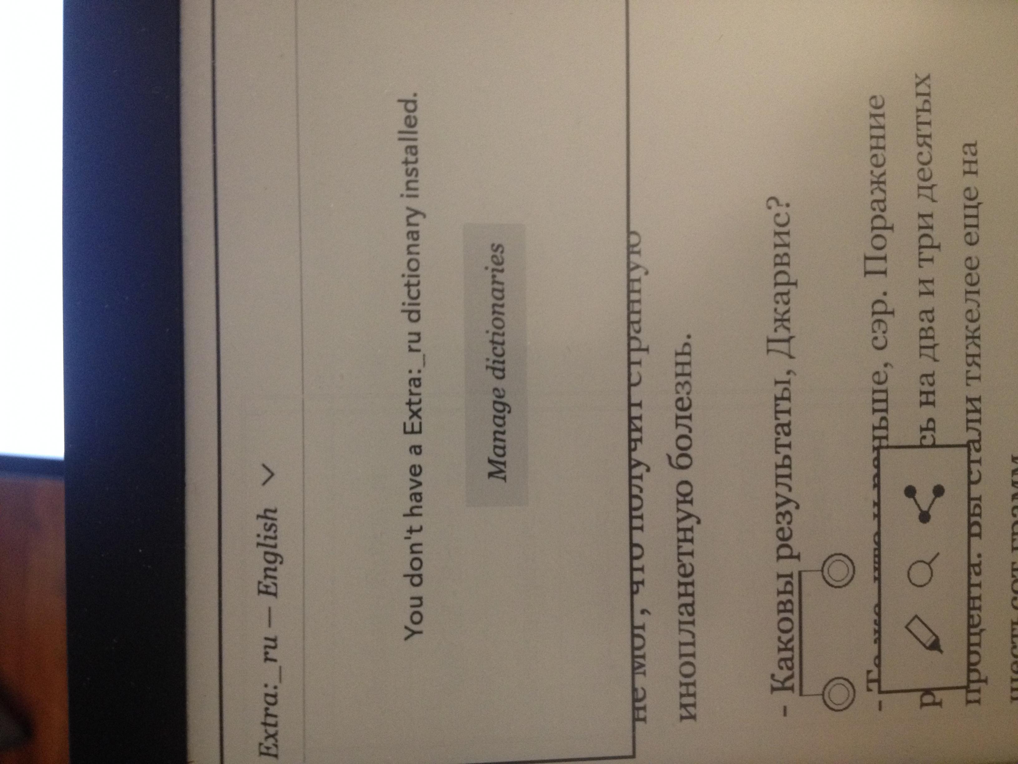 Now I have just one page of offered dictionary when I touch a word (see my post from 9:10pm), but it still tells me I've got no ru dictionary.
