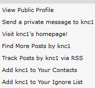 Easiest way is to click on your nickname in a post. I've attached three images to this message. One of knc1's dropdown menu, one of yours and one of mine.