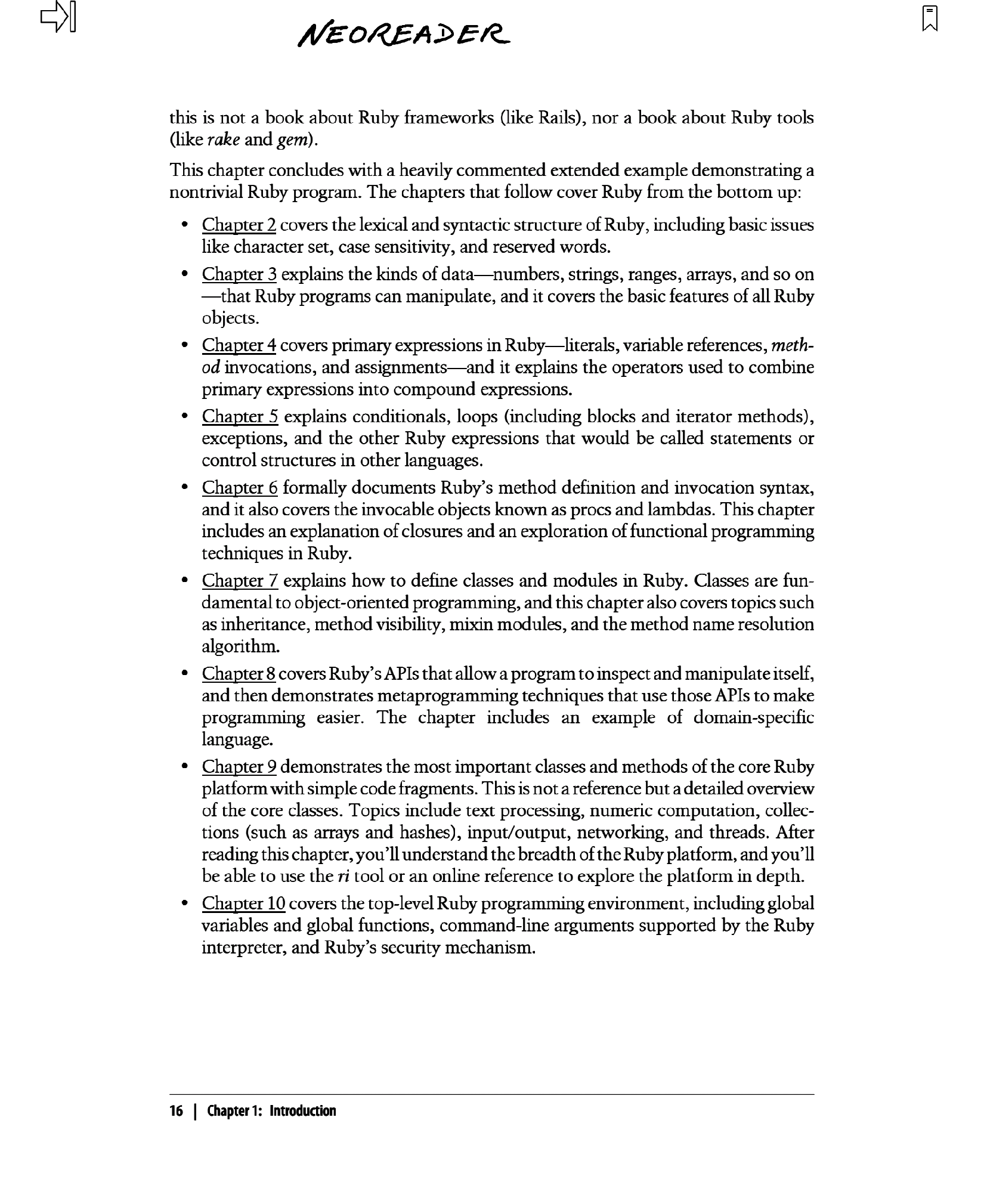 • 2 PDF files from O'Reilly, Programming Ruby (bought when O'Reilly sell directly the books), the pagination is awful;