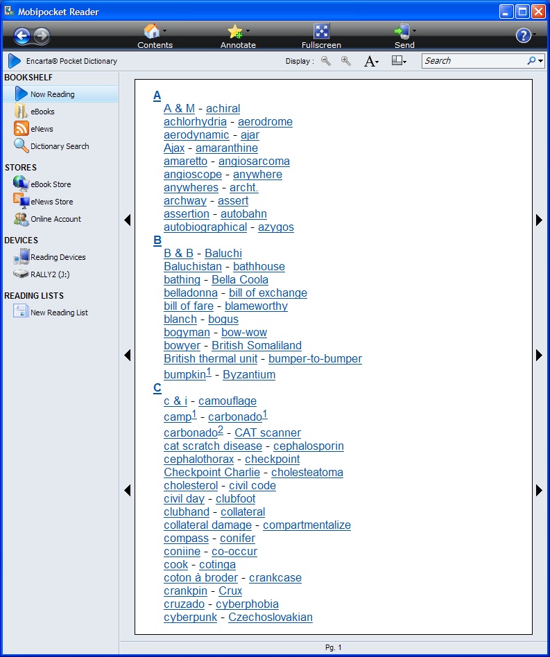 However, it is not a dictionary for Mobipocket use. It's just an ebook. Thanks for the detailed instructions! I must try this now! EDIT: BTW, I also converted the Foreign Translation-type dictionaries available at the microsoft link you provided. Did you try converting those to Mobipocket dictionary form? Last edited by nrapallo; 11-29-2008 at 09:49 AM. |