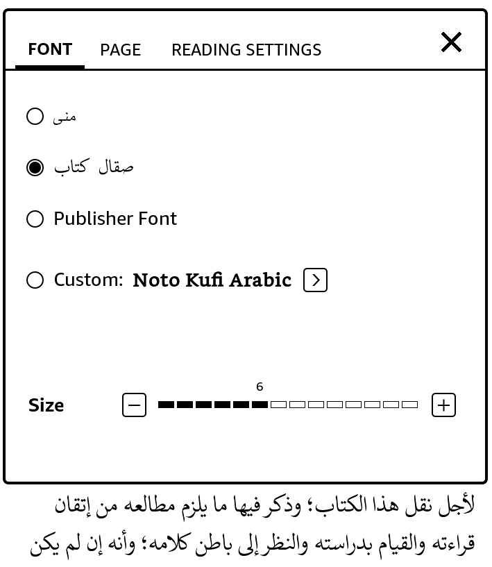 Most likely Amazon has deleted the Arabic language support section, because they're waiting for publishers to upload Arabic ebooks that can be converted to KFX books. It's also a bit strange that they don't allow eInk Kindle users to download the Oxford English-Arabic dictionary, which is a free Kindle for iOS download. I've attached screenshots of the new Arabic keyboard layout, which seems to be based on the macOS layout, and the Arabic font selection dialog box showing the new default Arabic fonts. Last edited by Doitsu; 06-07-2018 at 08:27 AM. |