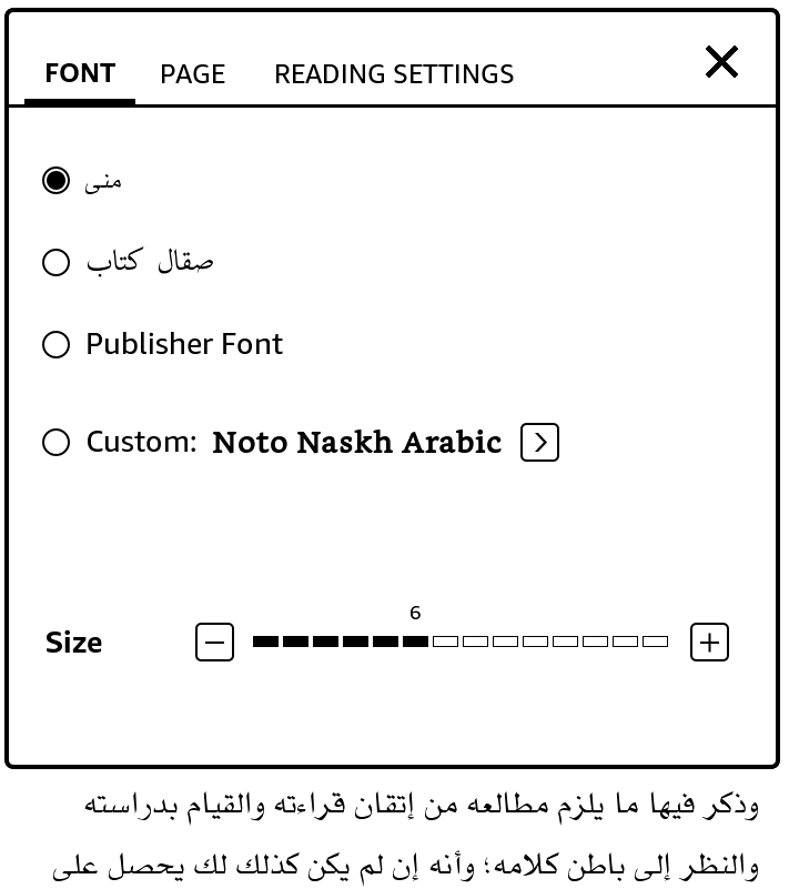 Most likely Amazon has deleted the Arabic language support section, because they're waiting for publishers to upload Arabic ebooks that can be converted to KFX books. It's also a bit strange that they don't allow eInk Kindle users to download the Oxford English-Arabic dictionary, which is a free Kindle for iOS download. I've attached screenshots of the new Arabic keyboard layout, which seems to be based on the macOS layout, and the Arabic font selection dialog box showing the new default Arabic fonts. Last edited by Doitsu; 06-07-2018 at 09:27 AM. |
